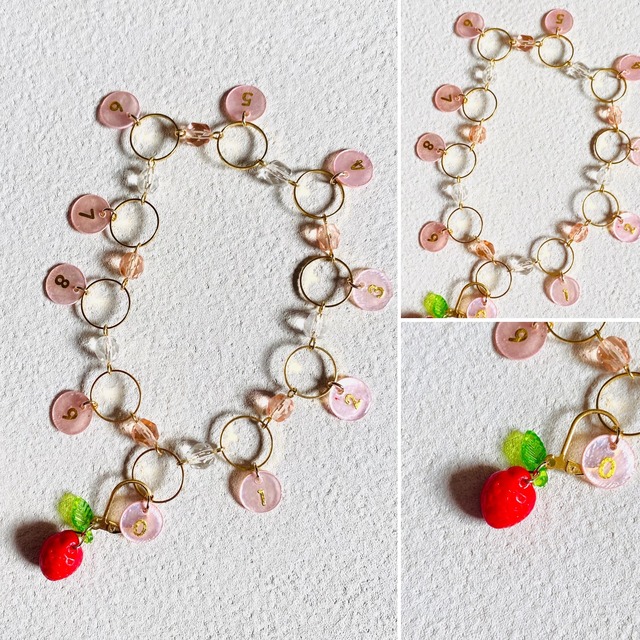 【予約商品】ストロベリーチャーム段数カウンター (ピンク) S・M・Lサイズ (毛糸玉マーカー付き)