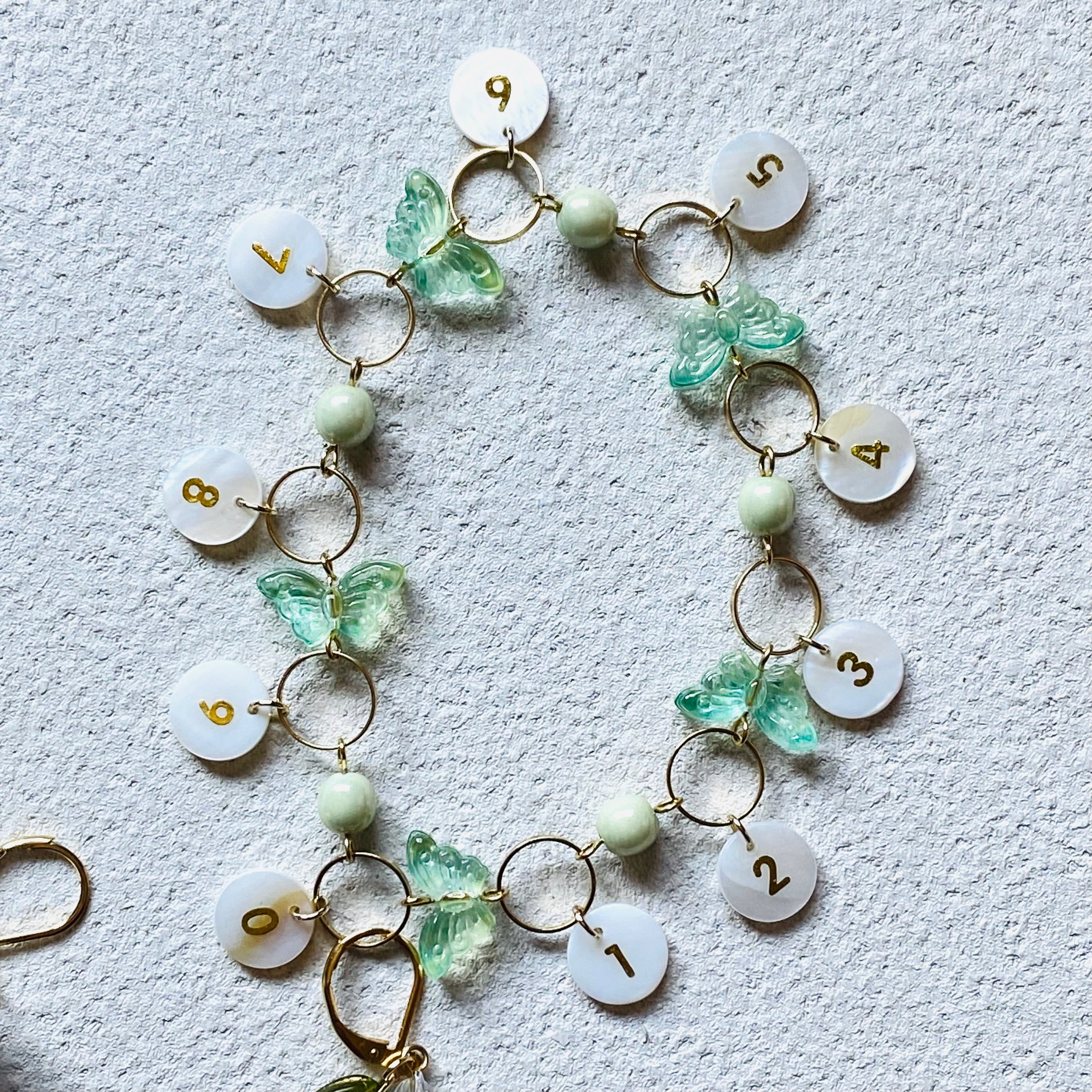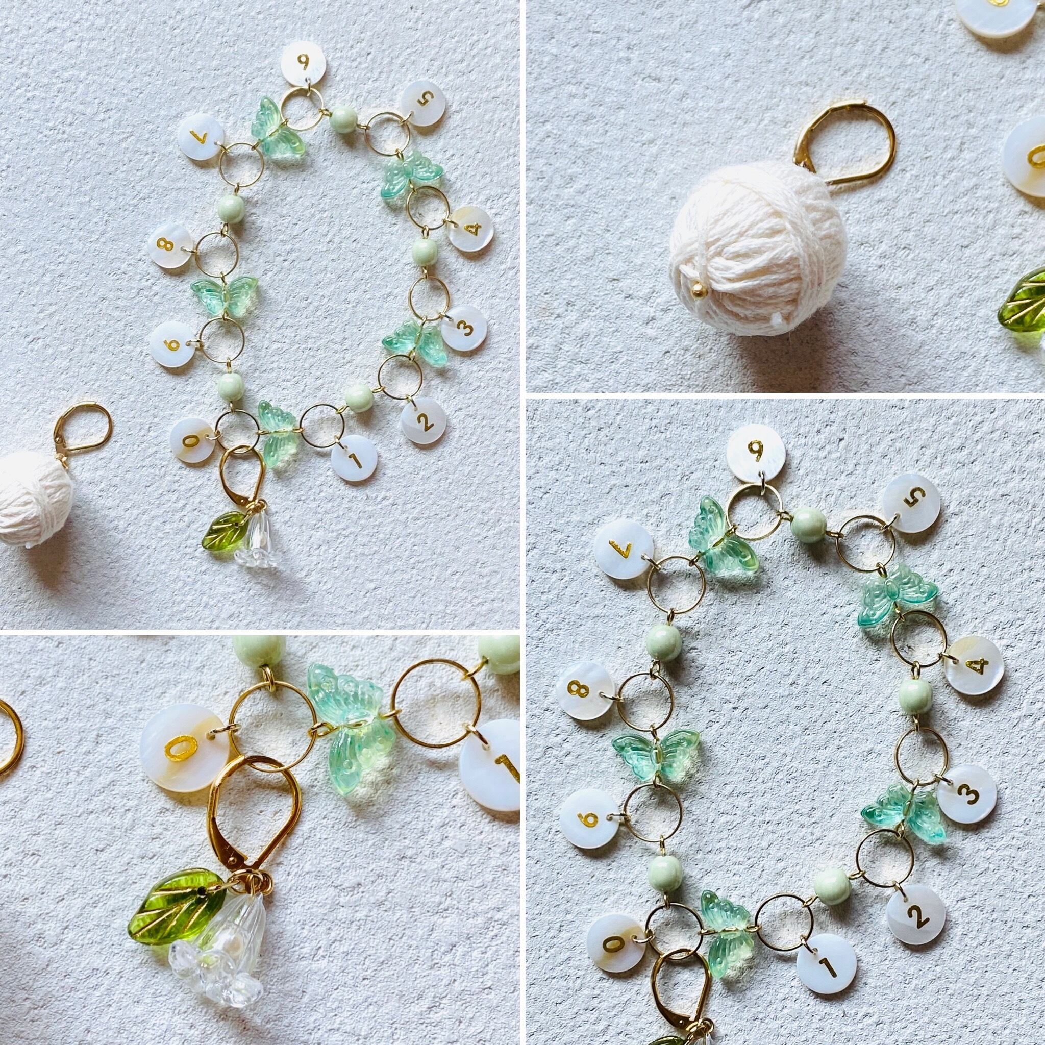 シェル×蝶々段数カウンター (グリーン) 〜Mサイズ (毛糸玉マーカー付き)