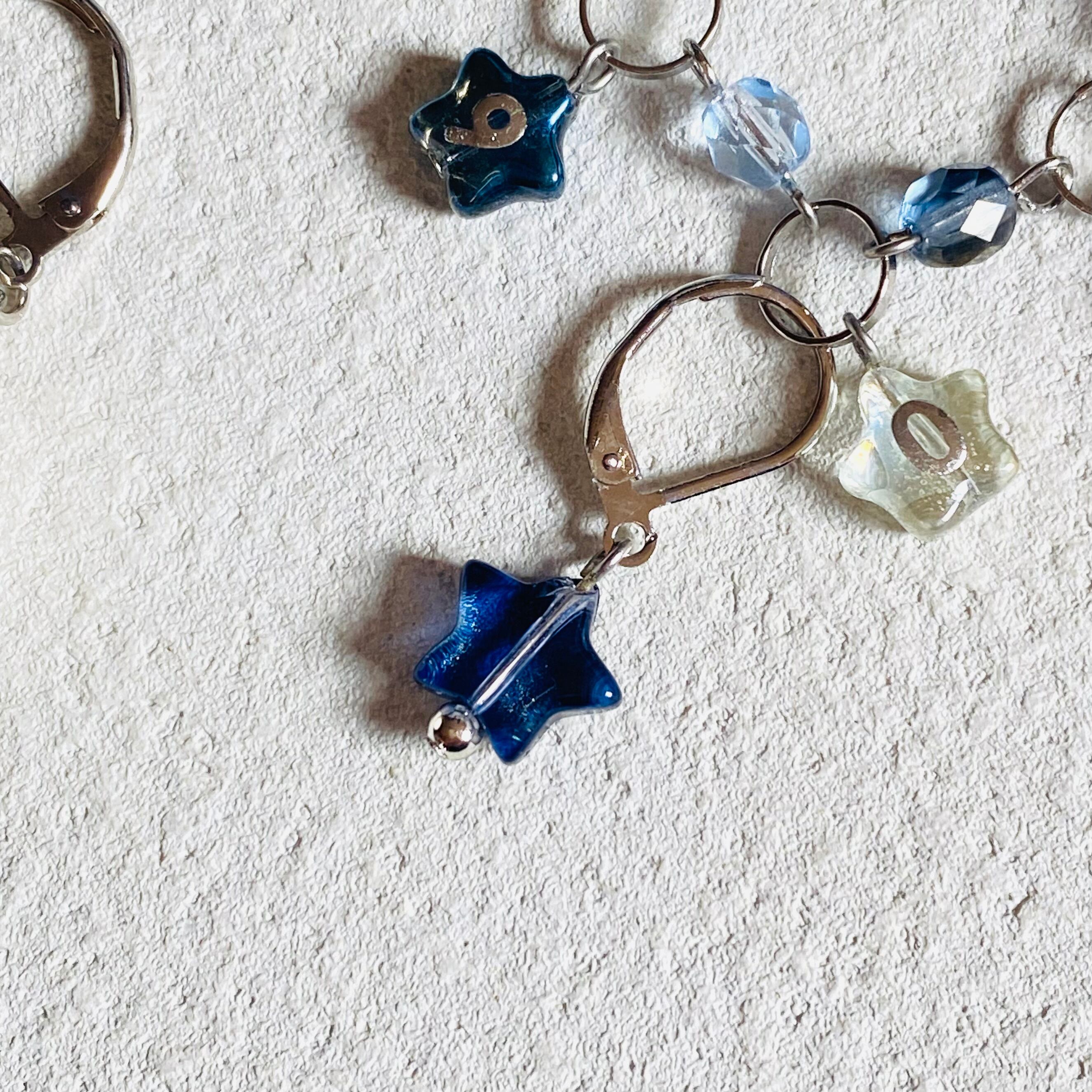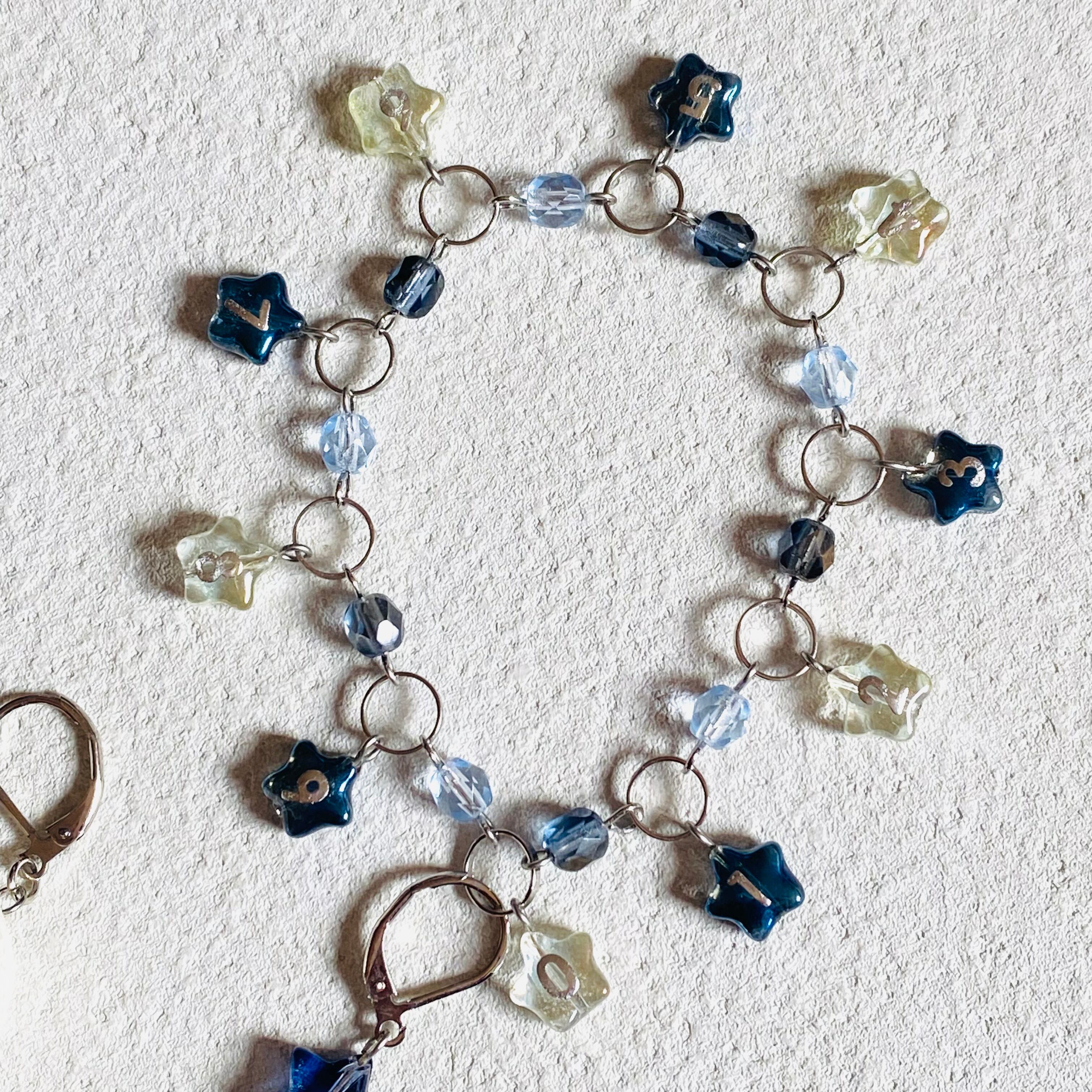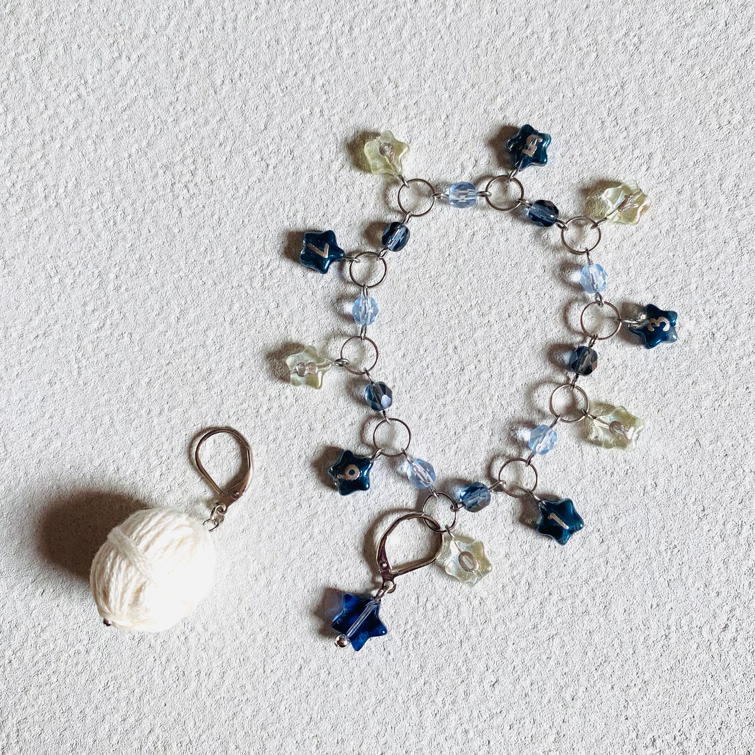 スター×パール段数カウンター (ネイビー) 〜Sサイズ (毛糸玉マーカー付き)