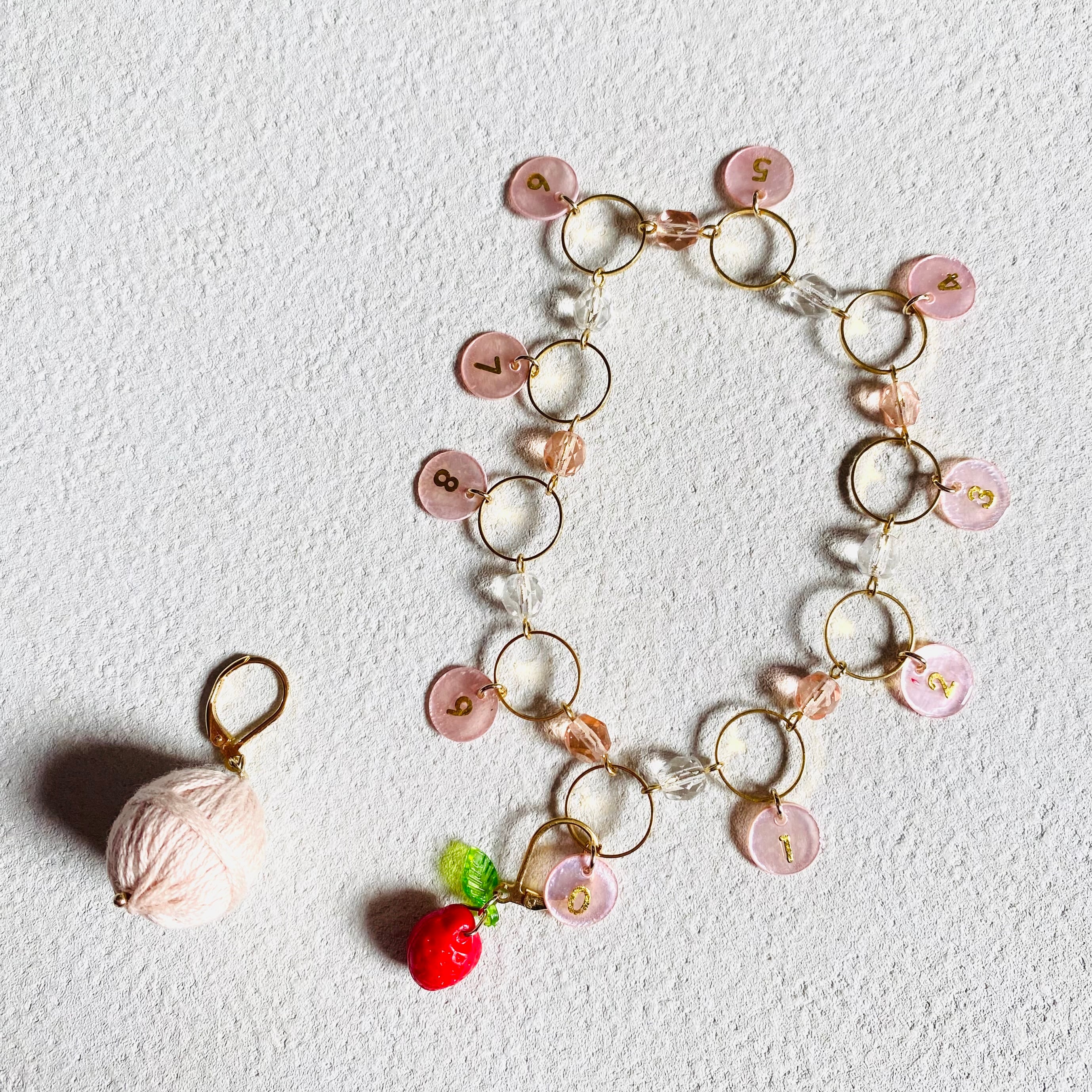 ストロベリーチャーム段数カウンター (ピンク) 〜Lサイズ (毛糸玉マーカー付き)