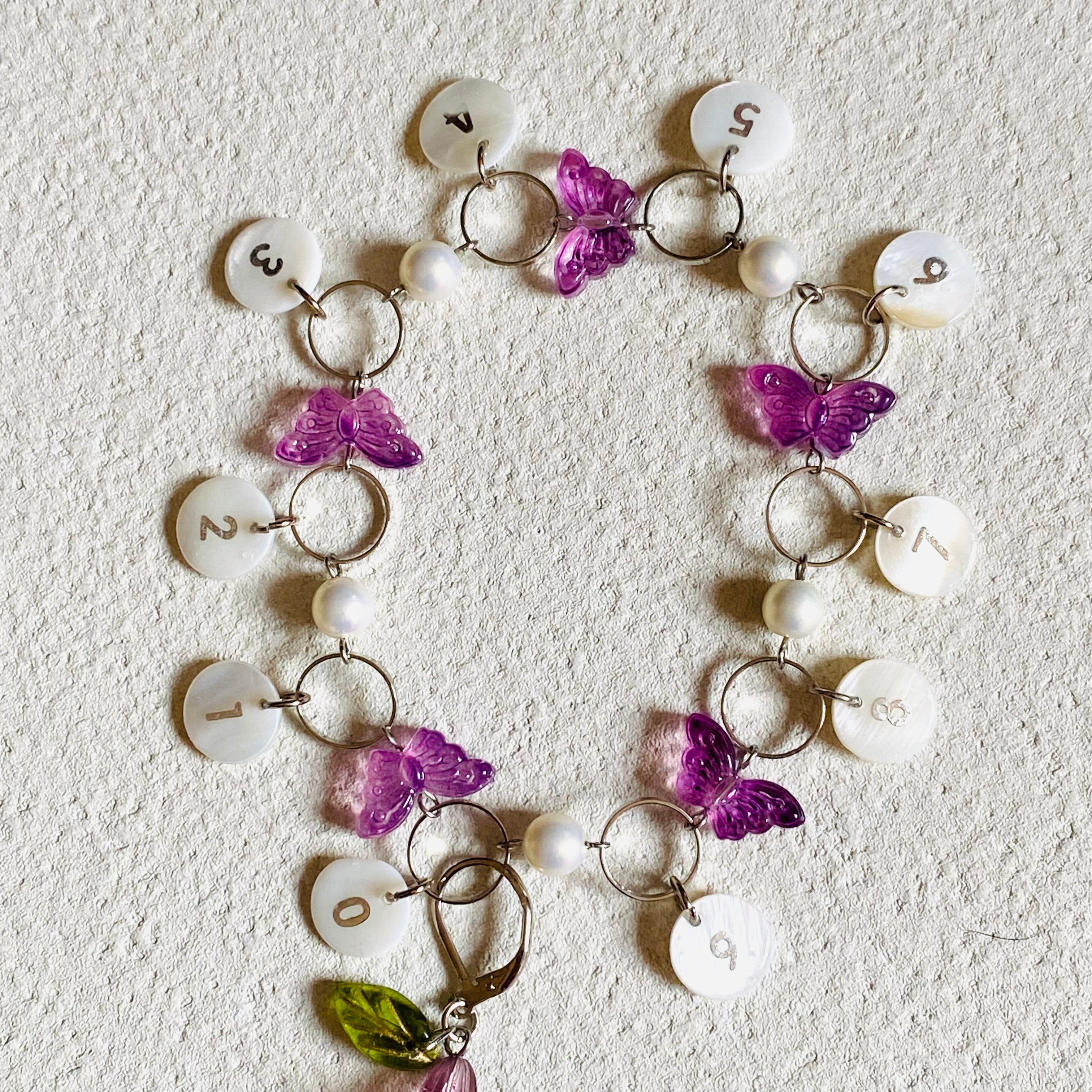 シェル×蝶々段数カウンター (パープル) 〜Mサイズ (毛糸玉マーカー付き)