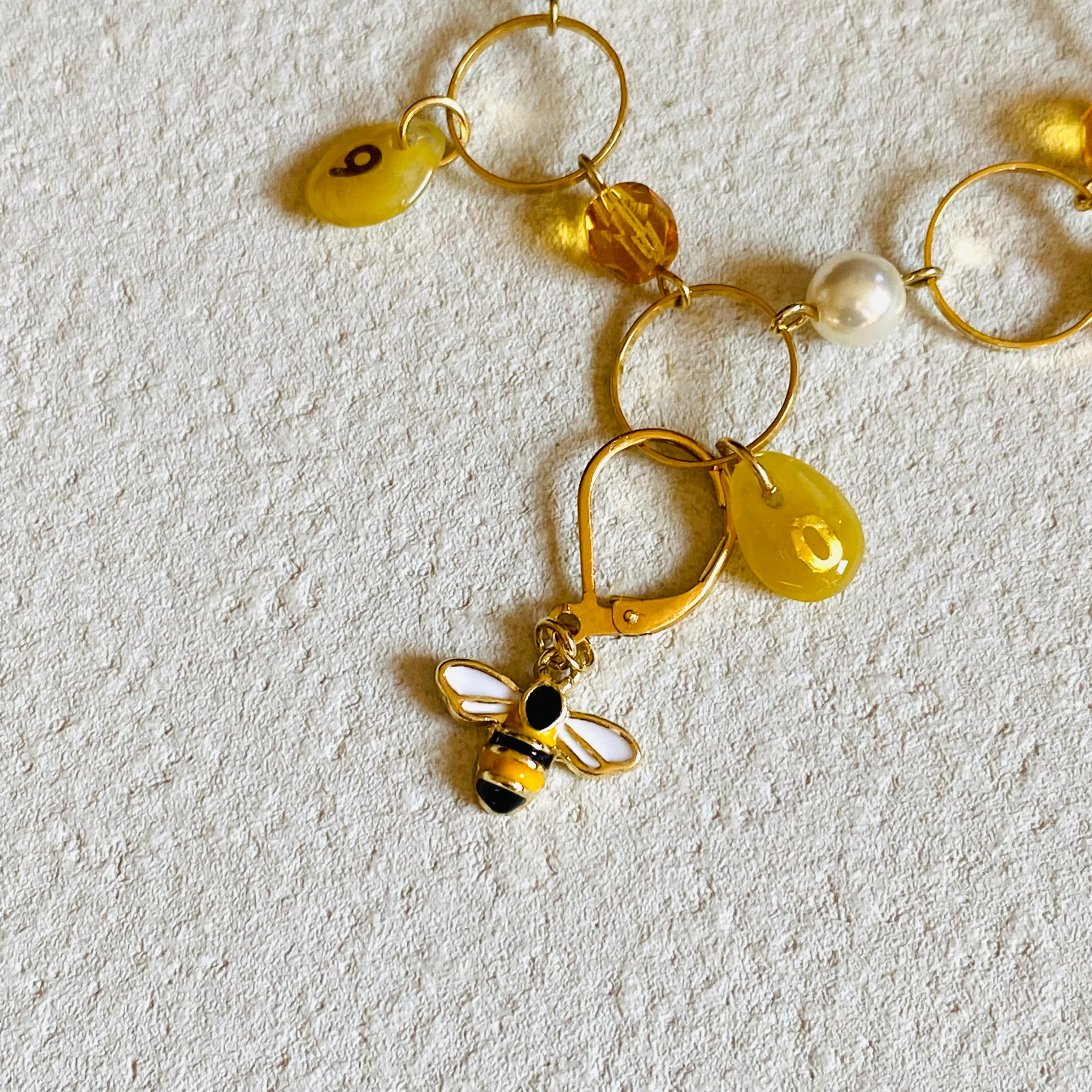 ミツバチ段数カウンター (イエロー) 〜Lサイズ (毛糸玉マーカー付き)