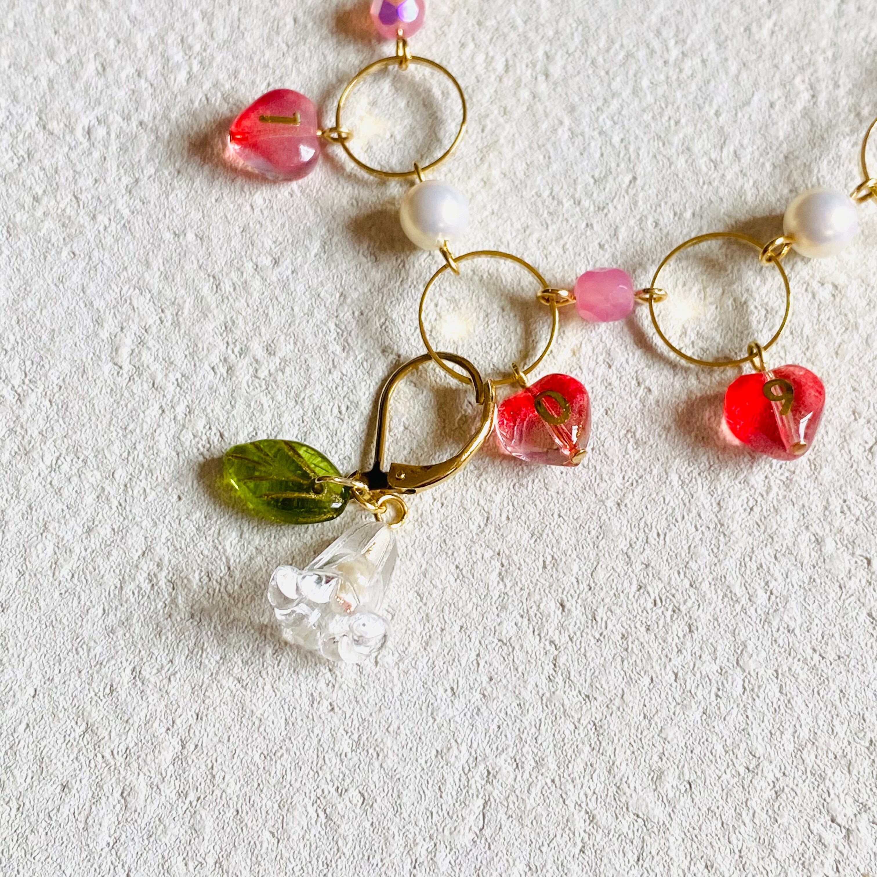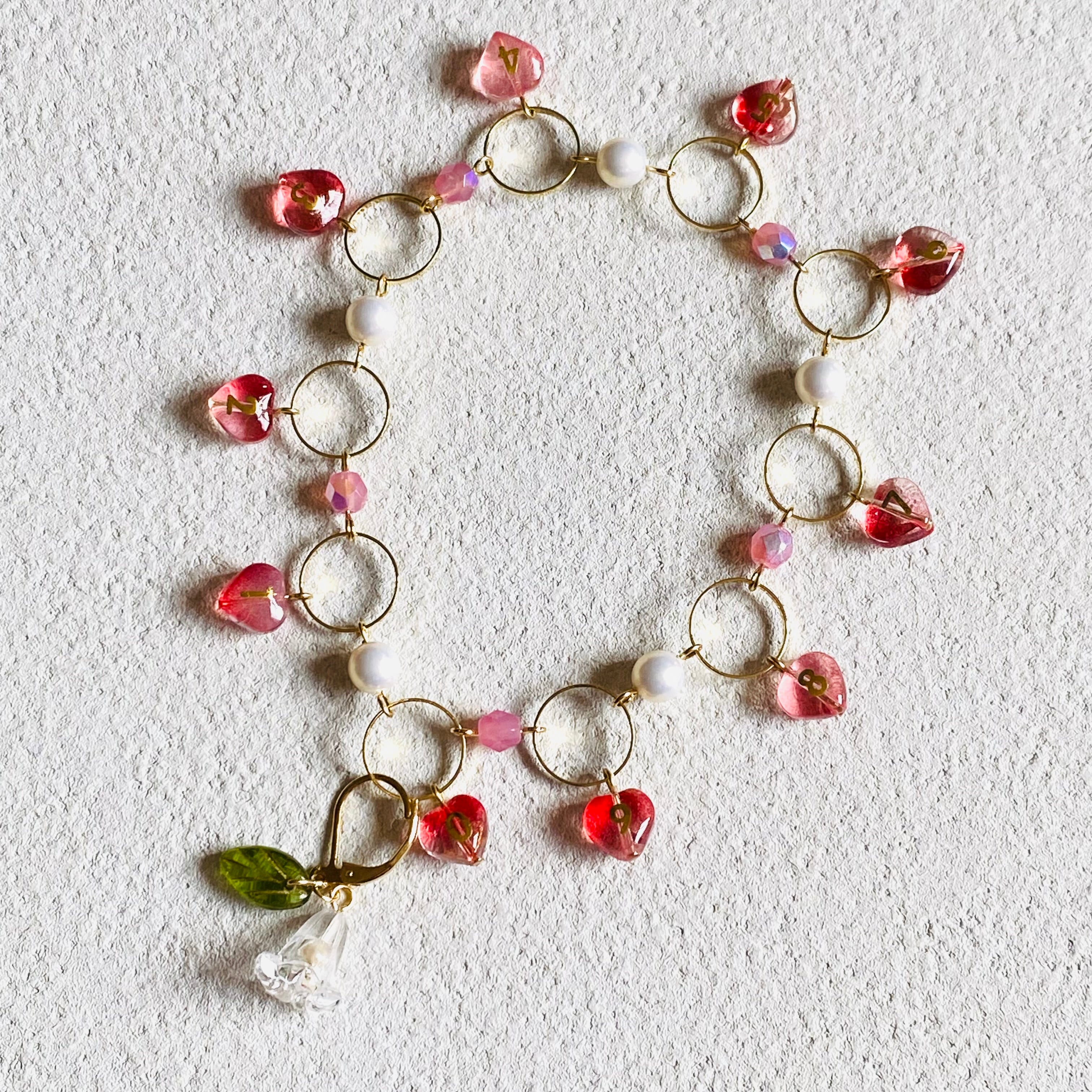 フラワー×ハート段数カウンター (レッドミックス) 〜Lサイズ