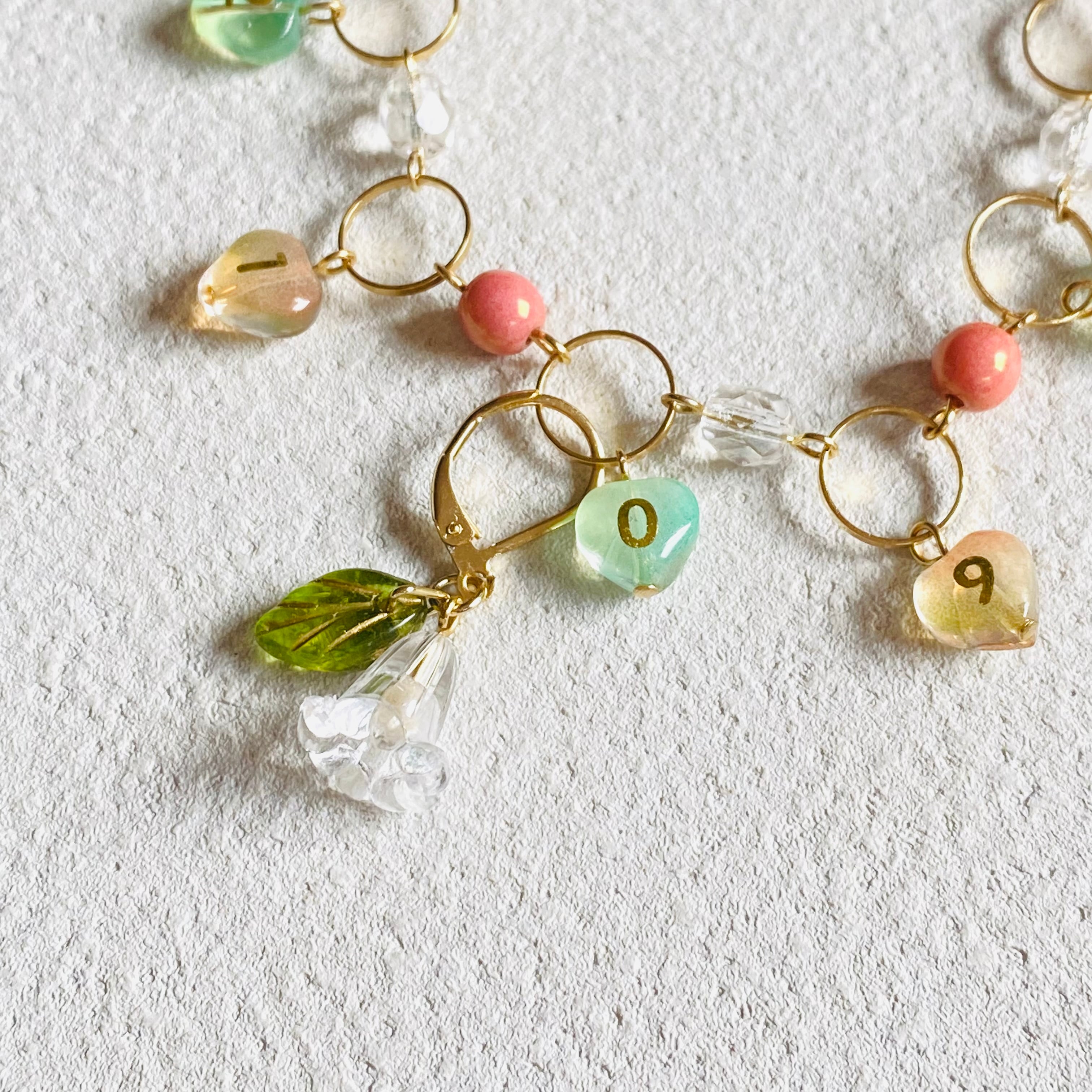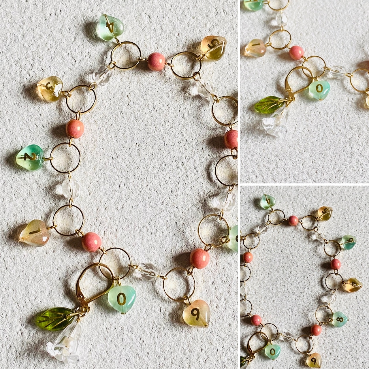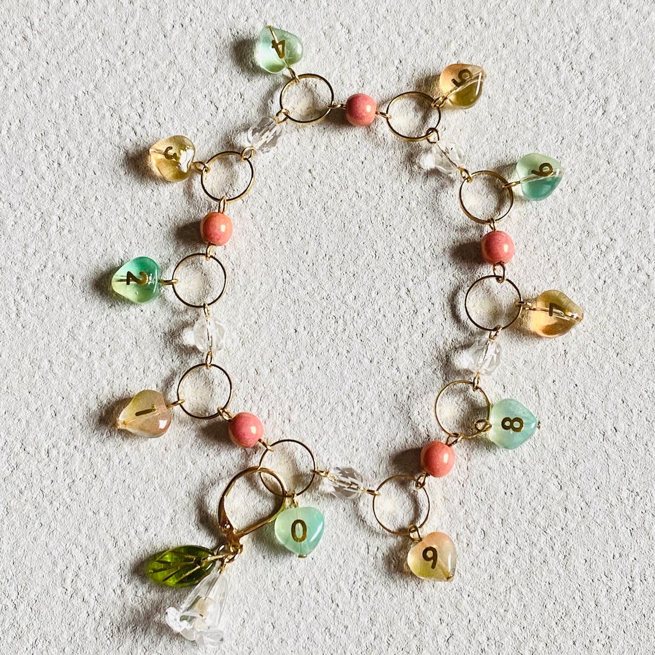 フラワーマーカー×ハート段数カウンター (ピンク×ライトグリーンミックス①) 〜Mサイズ