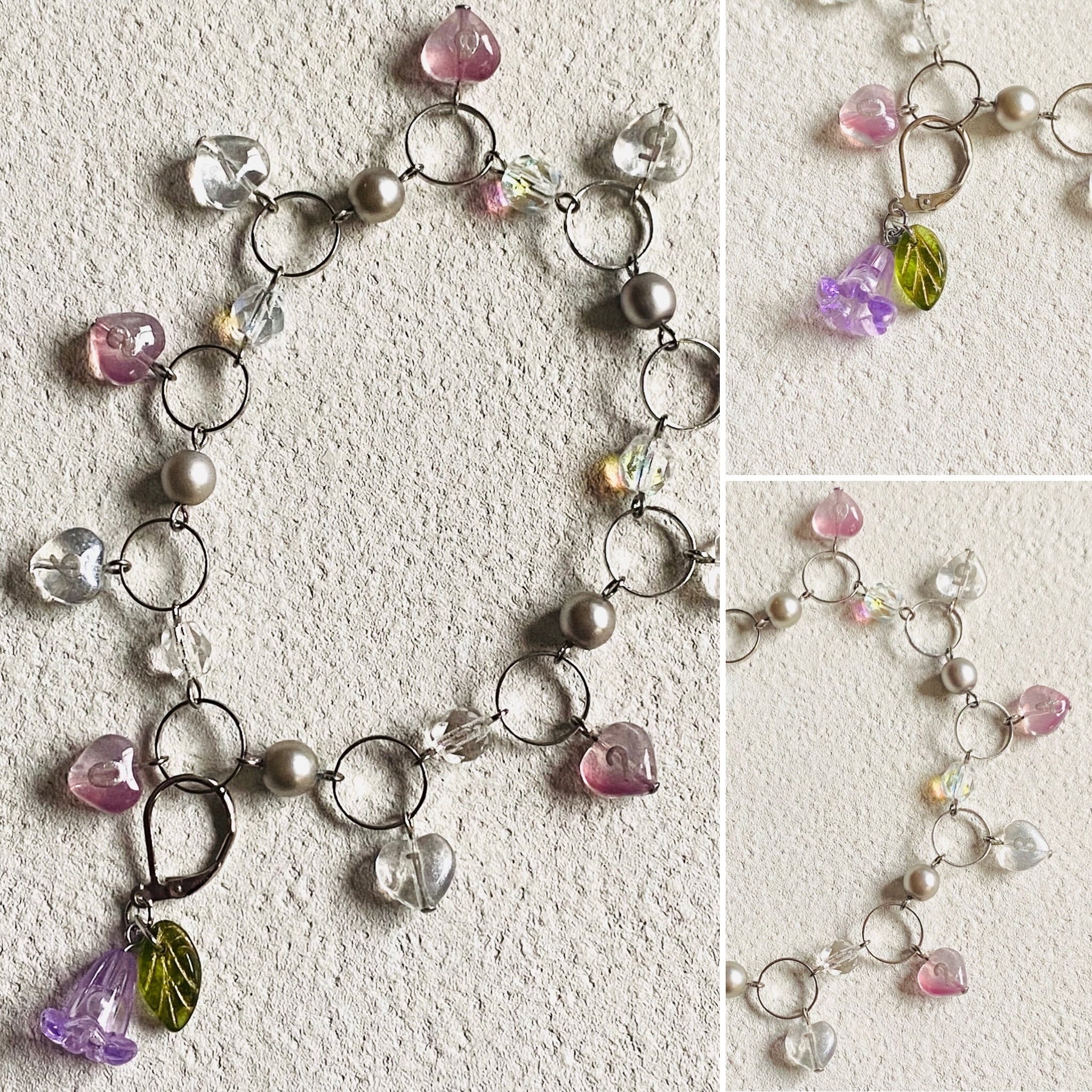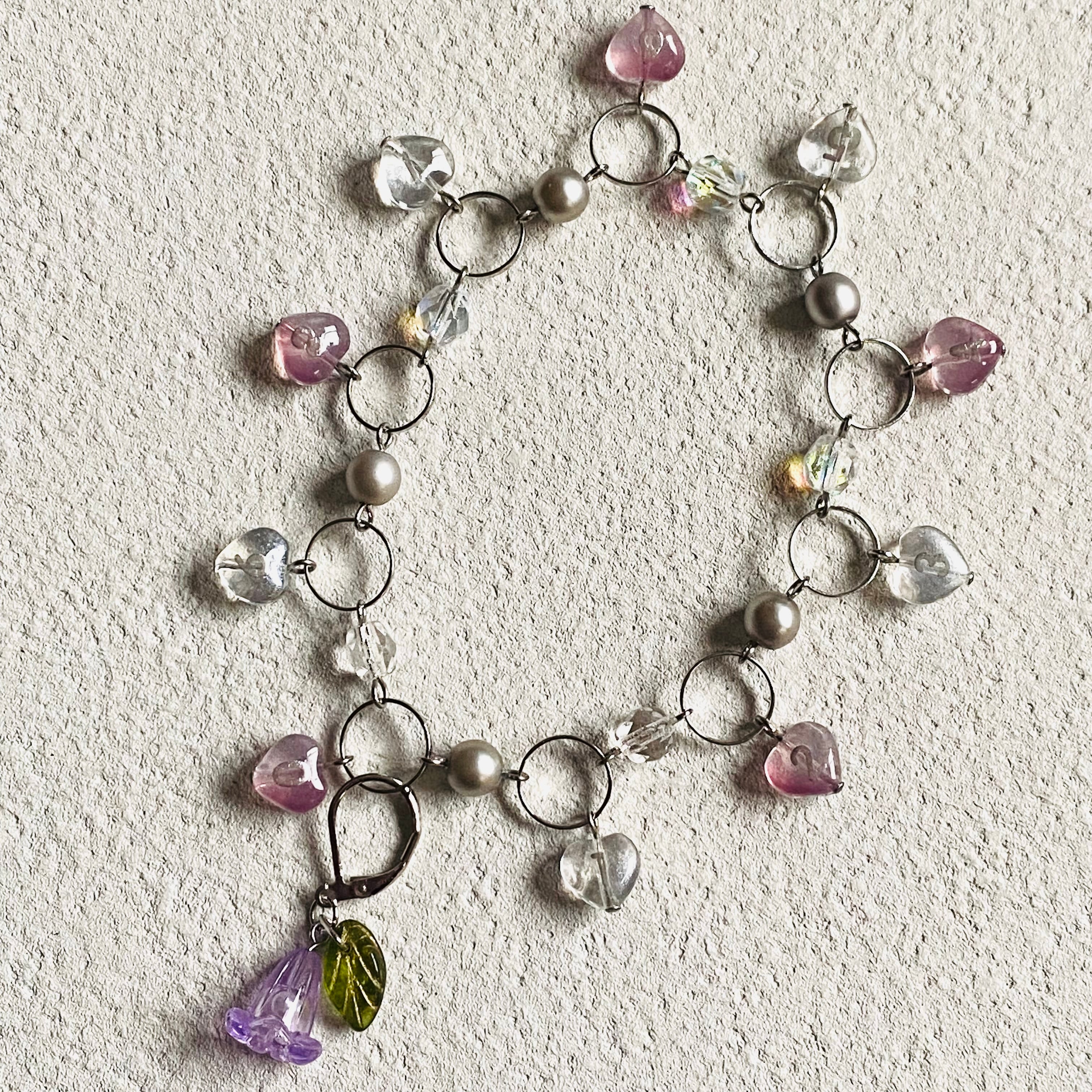 フラワー×ハートビーズ段数カウンター (パープル×グレー) 〜Mサイズ