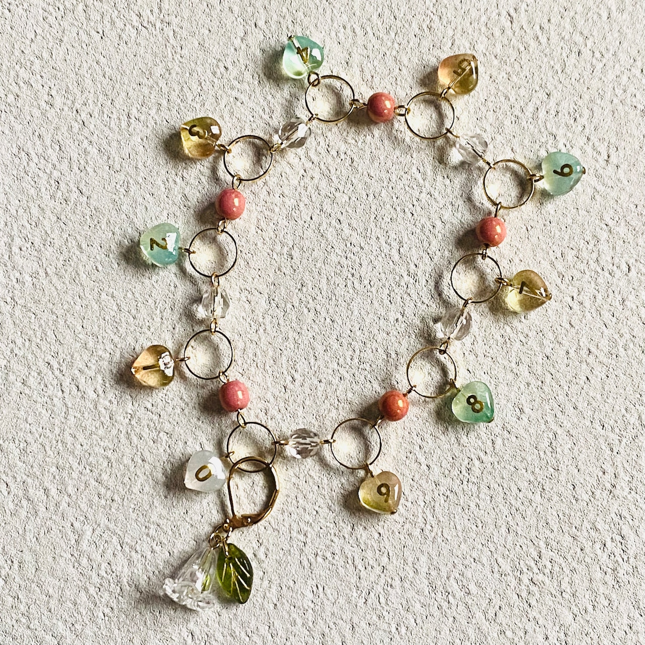 フラワー×ハートビーズ段数カウンター (ライトグリーンミックス×ピンク②) 〜Mサイズ