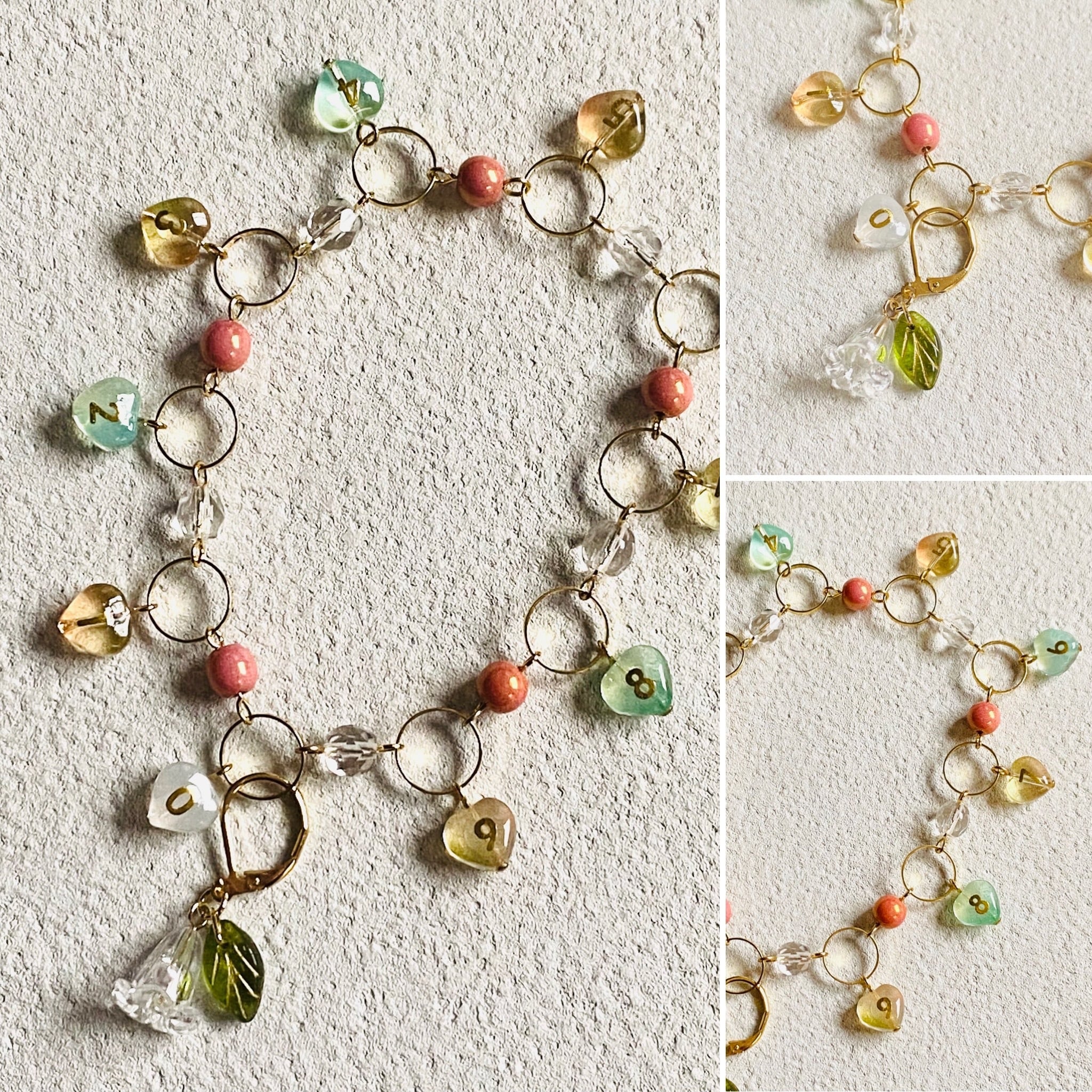 (ライトグリーンミックス×ピンク①とハートのビーズのカラーが若干違ったり間のビーズの並びが違いますが全体のカラーはほぼ同じです。)