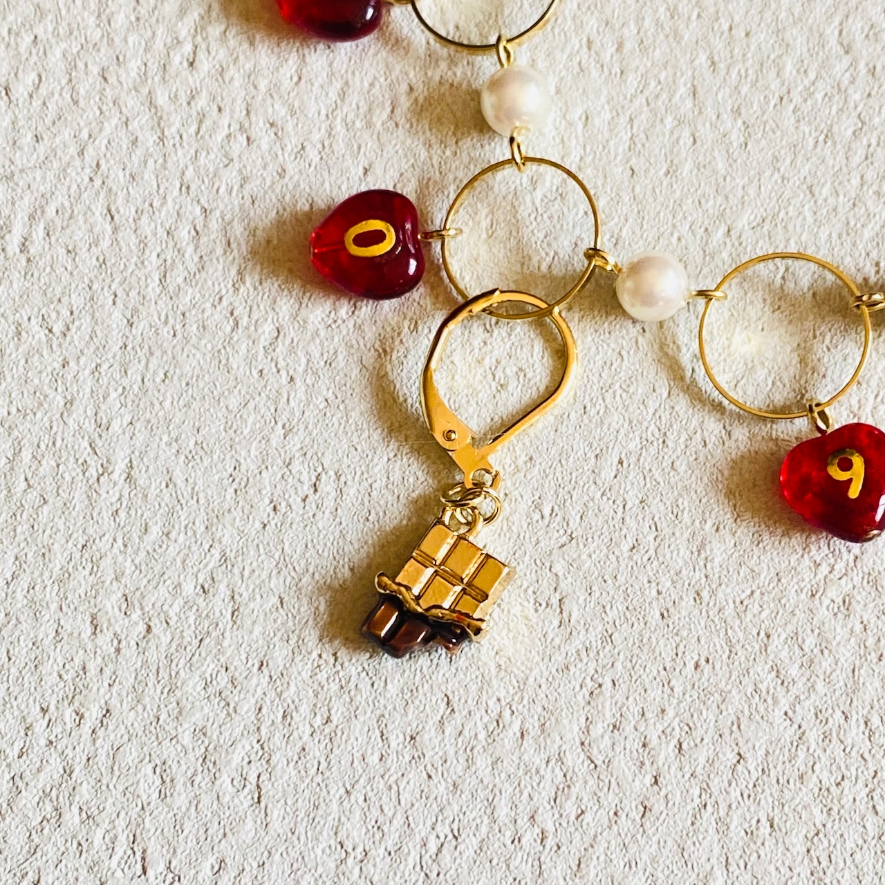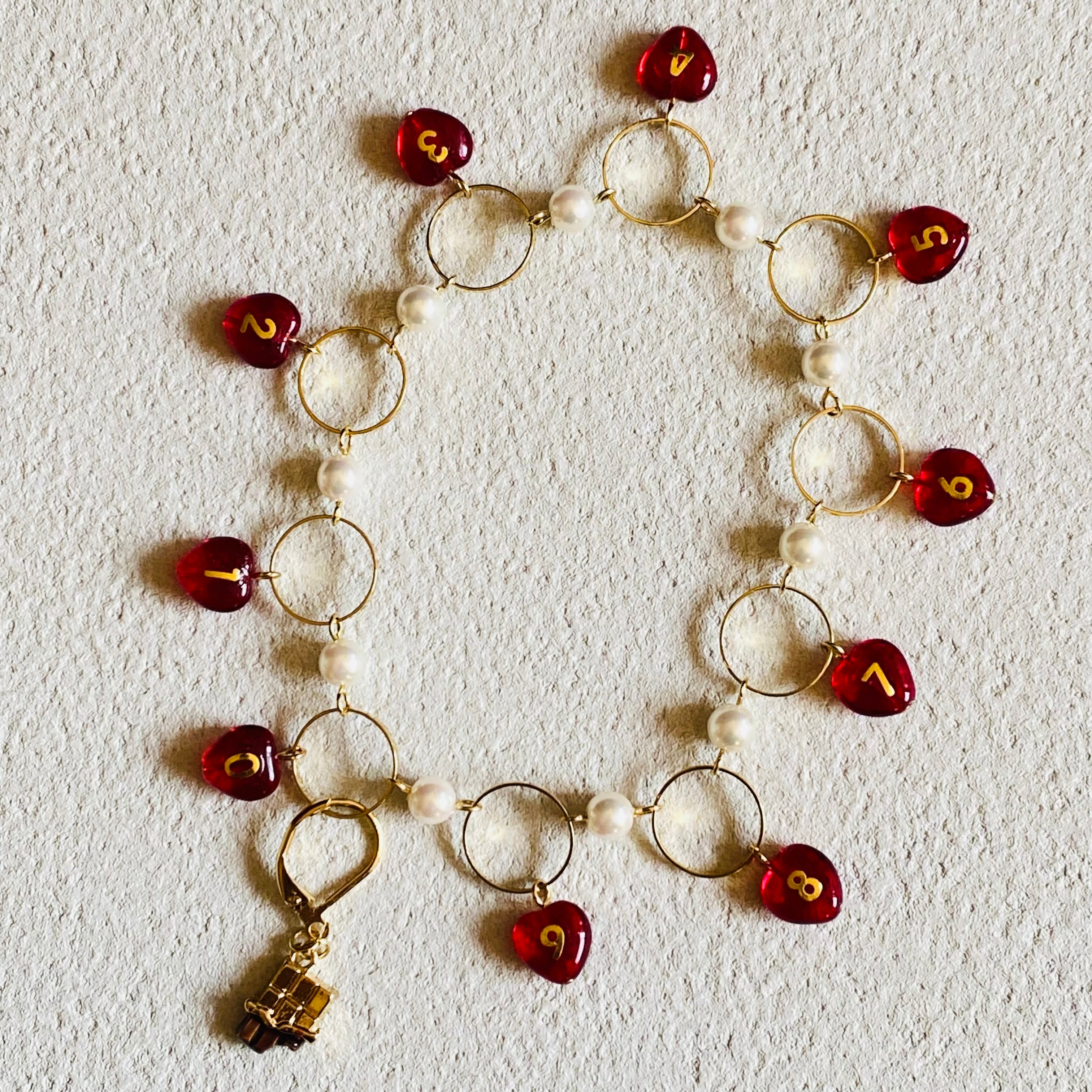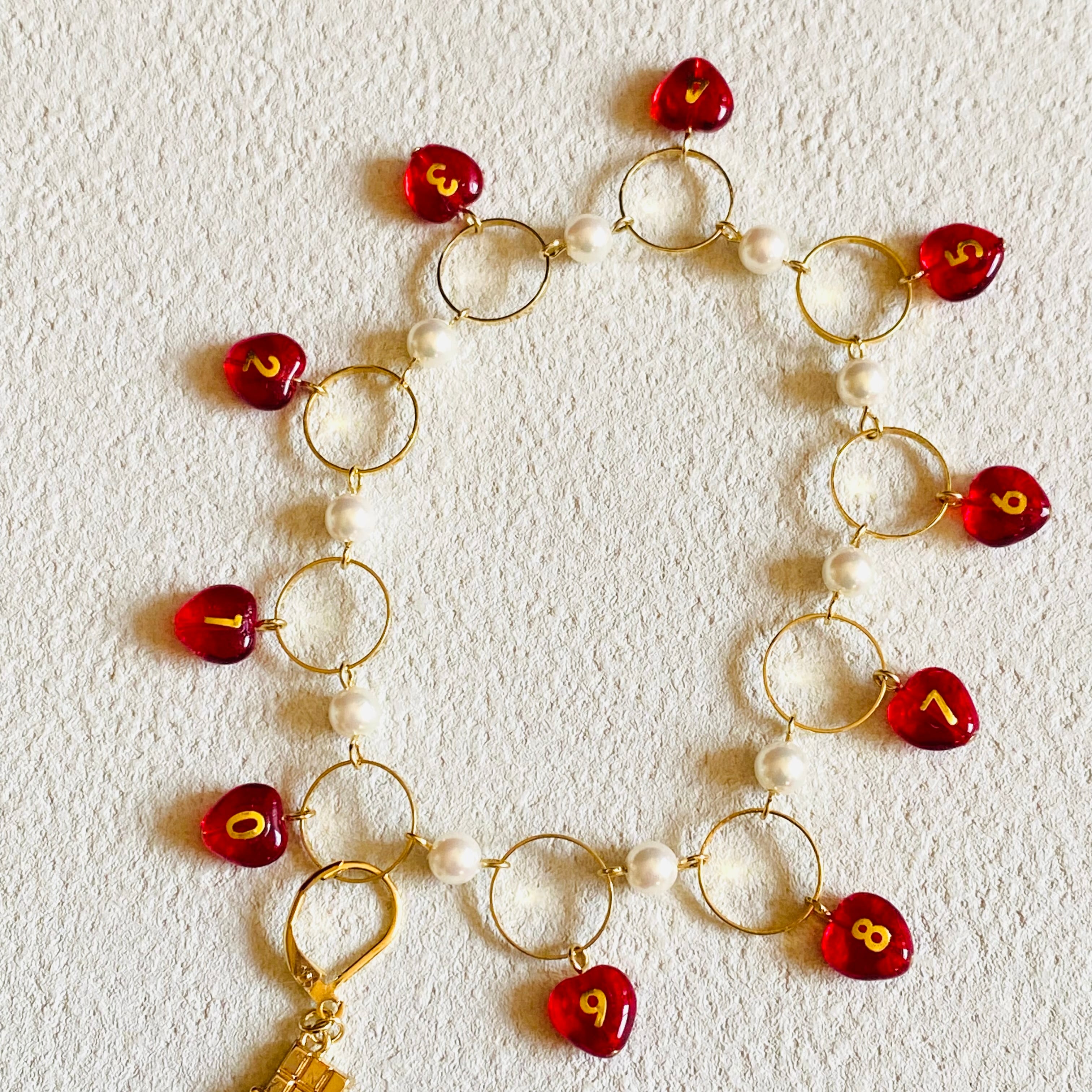 数字のビーズは一つ一つ手作業で数字のシールを貼りレジンコーティングしております。