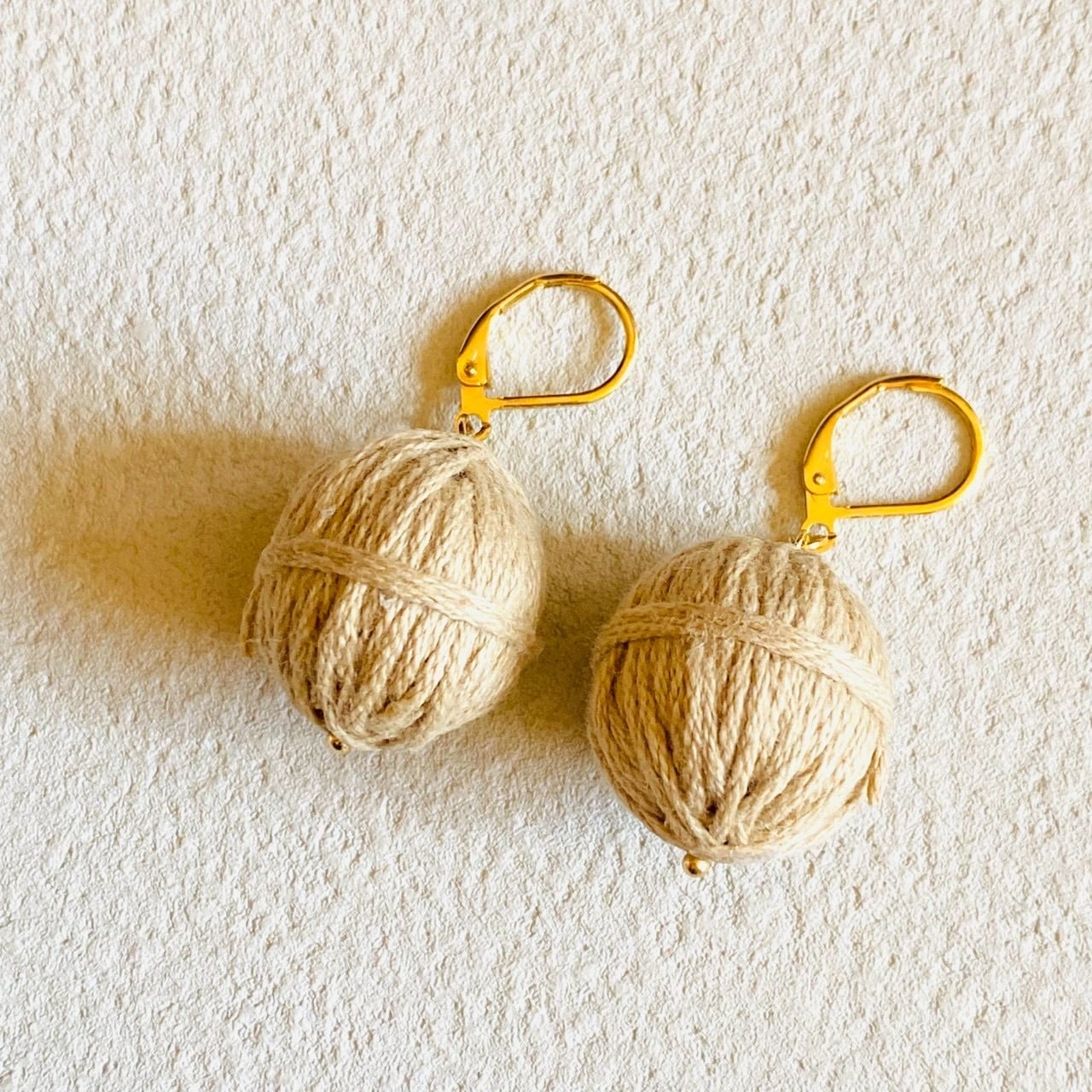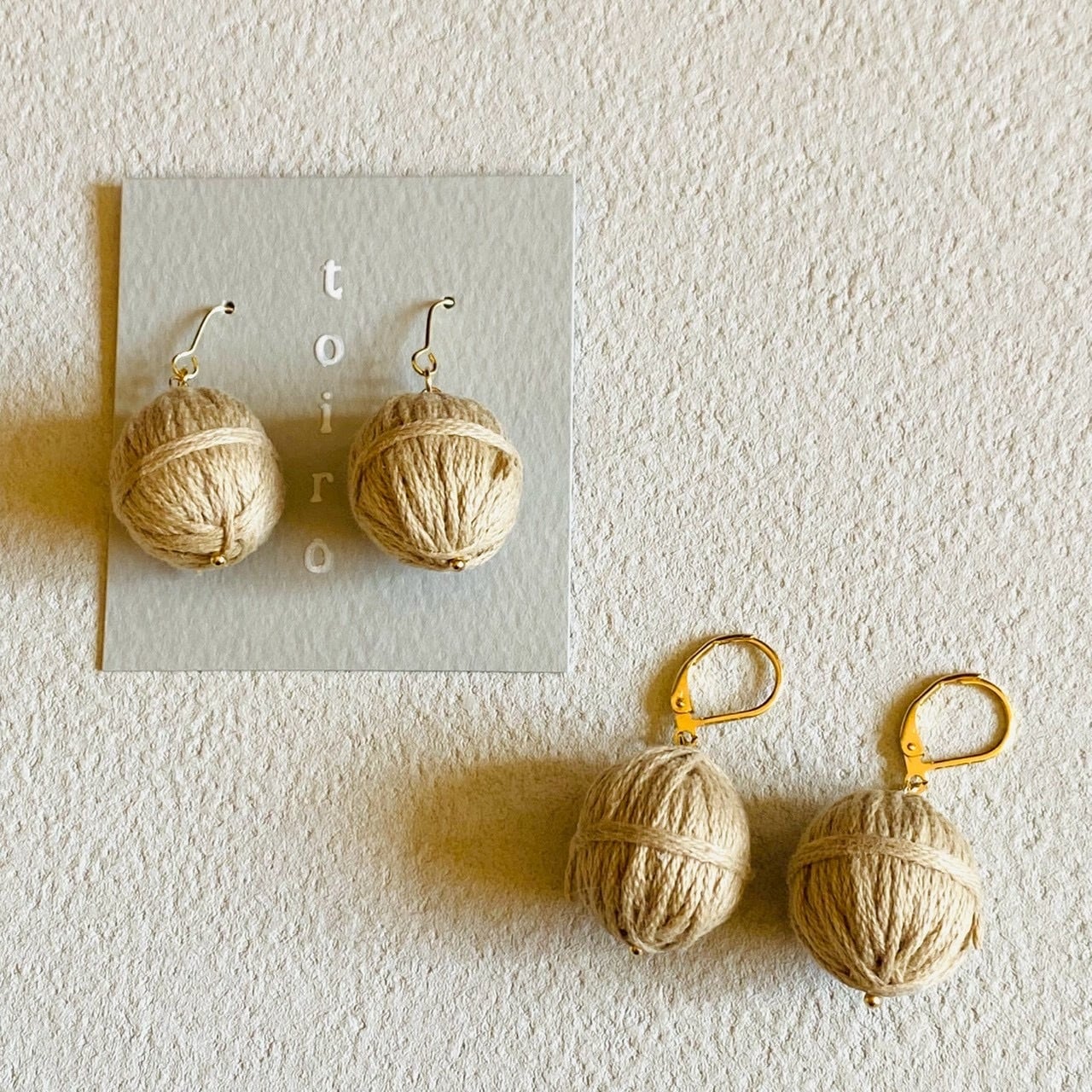 毛糸玉マーカー(ピアス・イヤリング) ベージュ