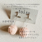 さらに写真6枚目、7枚目のようにゆらゆら揺れるチェーンタイプへの変更も有料(1セット110円プラス)で変更可能で、こちらに変更の場合は【ピアス・イヤリングチェーンタイプ用オプション】の商品をご希望のセット分を別途カートに入れてお買い求め下さい。