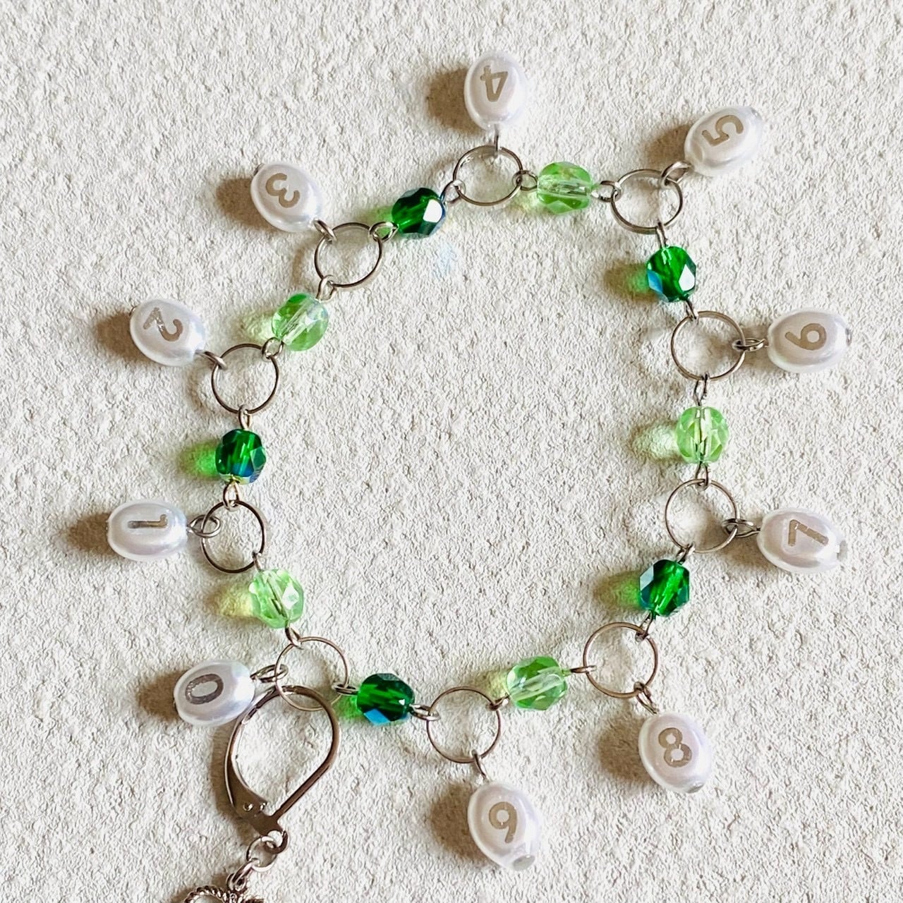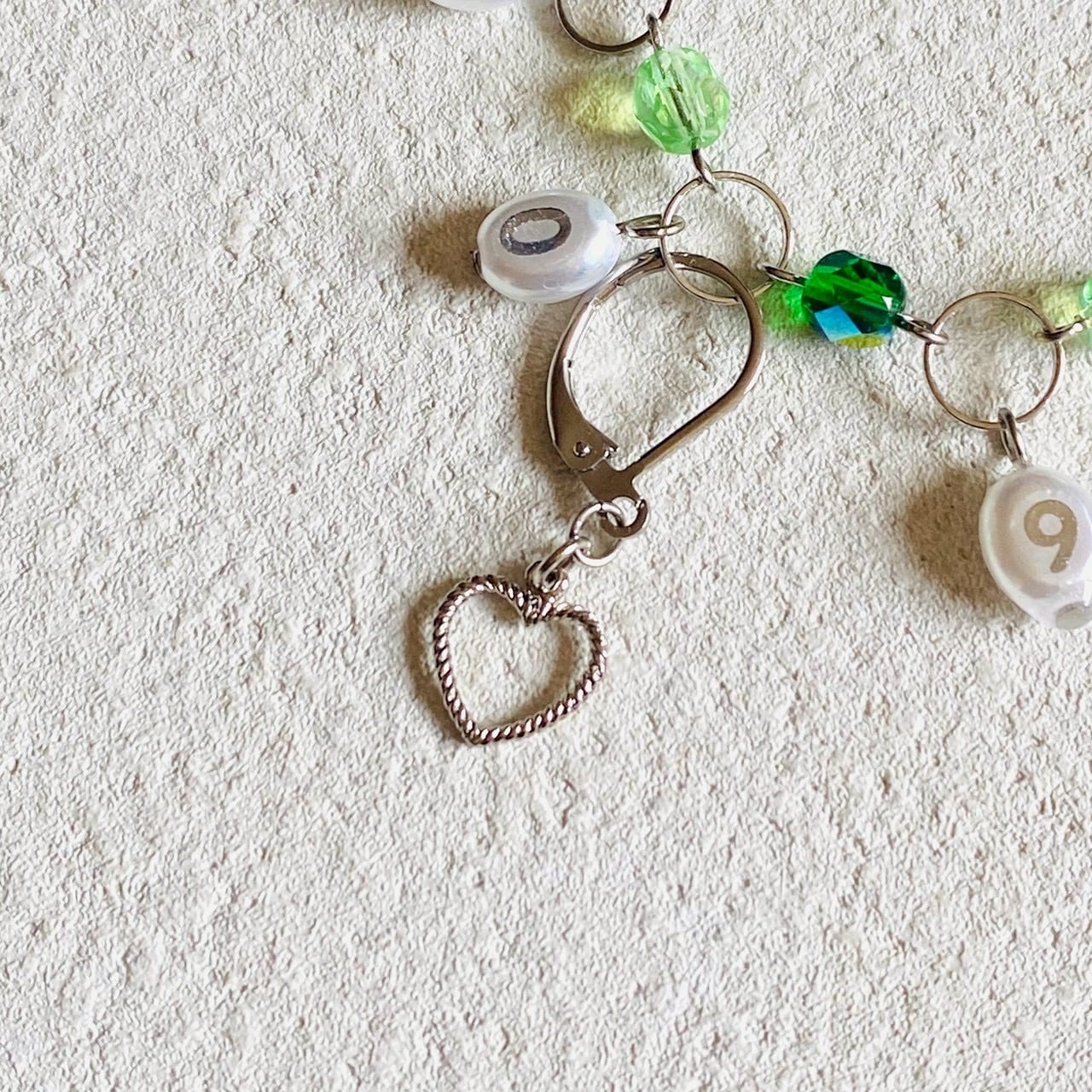 (サイズ変更可能)ハートチャームとオーバルパールの段数カウンター (シルバー×グリーン) S