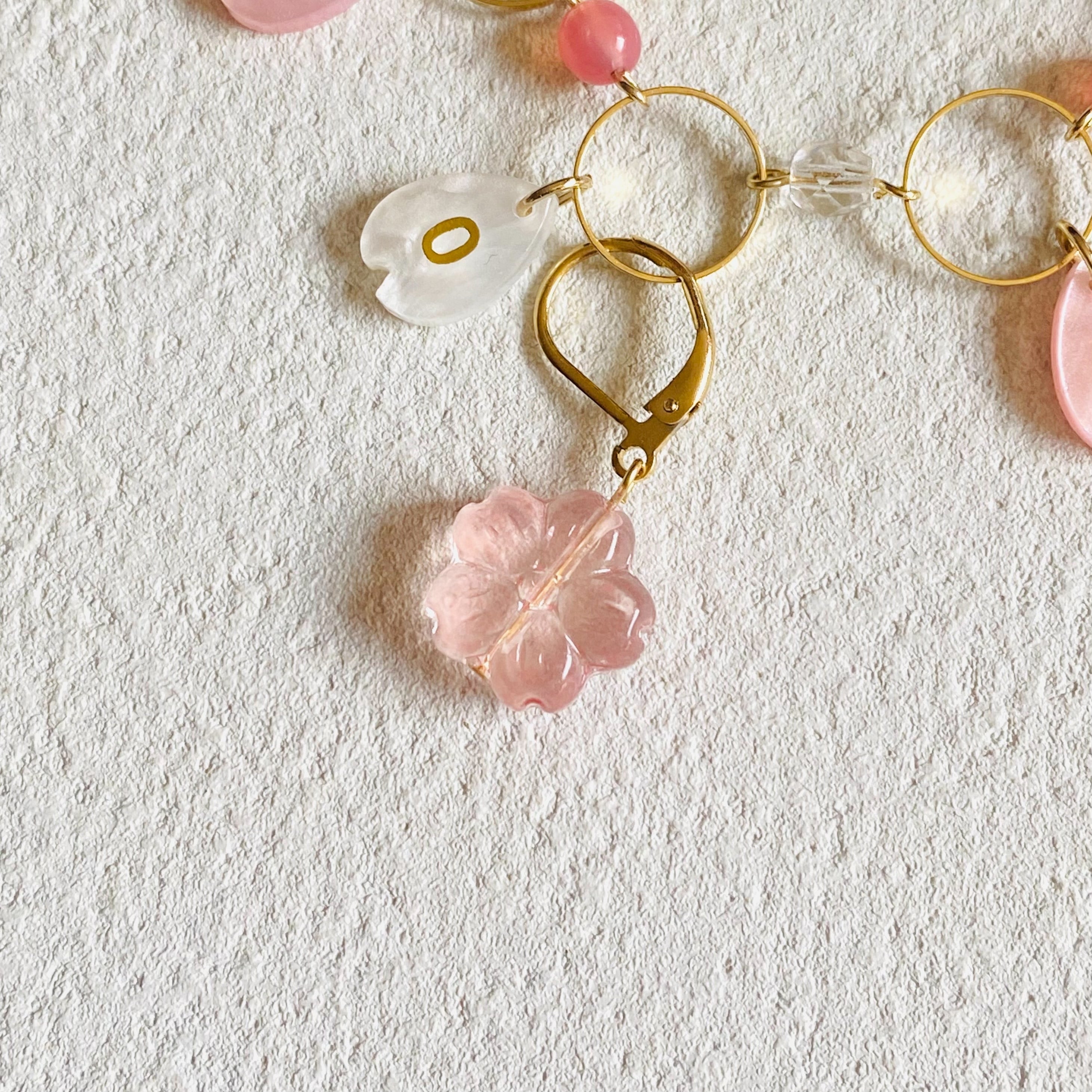 桜の花びらのビーズを数字部分に使い、マーカーも桜のお花のガラスビーズを使った桜づくしの季節感溢れるアイテムです。